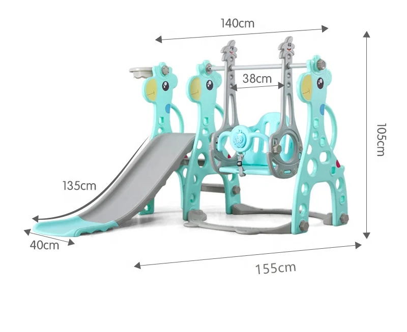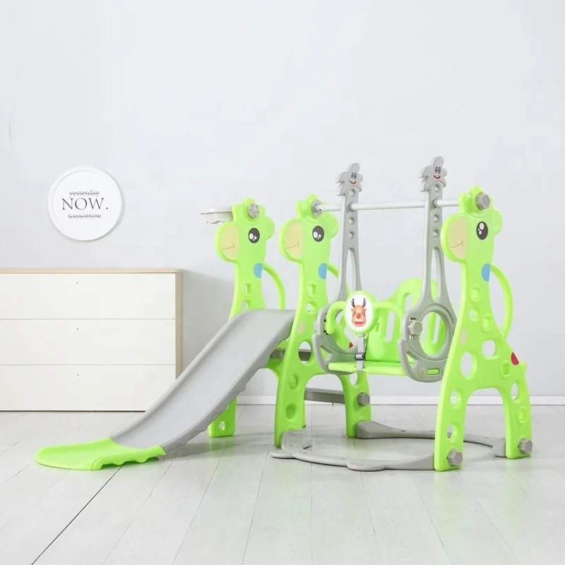 Specification: Kids Baby 3 in 1 Plastic Indoor Playground Toys Cute Deer Shape Toddler Basketball Hoop Swing and Slide Set